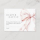 Baby shower diaper raffle enclosure card that features a pink bow and pink background.