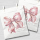 A charming party favour bag design featuring a large watercolor pink bow centred on the front. The mum-to-be's name is displayed in a classic serif font at the bottom, with "Baby Shower" elegantly written below in handwritten script calligraphy.