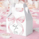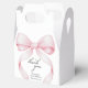Add a touch of charm and sophistication to your baby shower favours with these beautifully designed thank-you favour boxes, perfect for classic, coquette or Parisian-themed baby showers. Featuring a soft pink watercolor coquette bow and elegant script calligraphy, these boxes are a lovely way to show appreciation to your guests. Personalise them with the mum-to-be’s name and baby shower date for a special, custom touch. Give your baby shower favours a graceful finishing touch with these chic personalised favour boxes - customise yours today!
