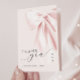 Show your appreciation with this Pink Bow Baby Shower Folded Thank You Card, featuring a charming blush pink bow and elegant script. This folded card provides ample space inside for a handwritten message, allowing you to express your gratitude in a personal and heartfelt way. A timeless and thoughtful way to thank your guests for celebrating this special moment with you.