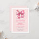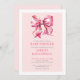 A cute and girly pink bow baby shower theme featuring a vibrant bright pink watercolor bow against a blush pink background. This charming design showcases a mix of grey and pink fonts, blending bold serif typography with a simple modern font for an elegant touch. Celebrate the mum-to-be in style with this delightful invitation! It's available in more colour schemes to suit any preference. You can easily change the font colours and background colour on both the front and back to match your unique theme. This invitation is perfect for adding a touch of sophistication and joy to your baby shower, ensuring a memorable event for everyone involved. Whether you're planning a spring, summer, autumn, or winter baby shower, this versatile design is sure to impress.Cute Pretty Watercolor Girl Bright Pink Bow Baby Shower Theme Party Invitation.