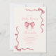 Celebrate the upcoming arrival of your little one with our Pink Bow Baby Shower Invitation, a delightful and charming way to invite your loved ones to share in your joy. Featuring a delicate hand-drawn bow in soft pink hues, this invitation exudes sweetness and elegance, perfect for welcoming a baby girl.