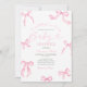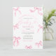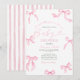 Celebrate a sweet baby girl with this elegant pink bow baby shower invitation. Featuring delicate watercolor pink ribbons scattered across a clean white background with soft pink stripe accents, this design offers a timeless and feminine look that feels refined, gentle, and joyful.