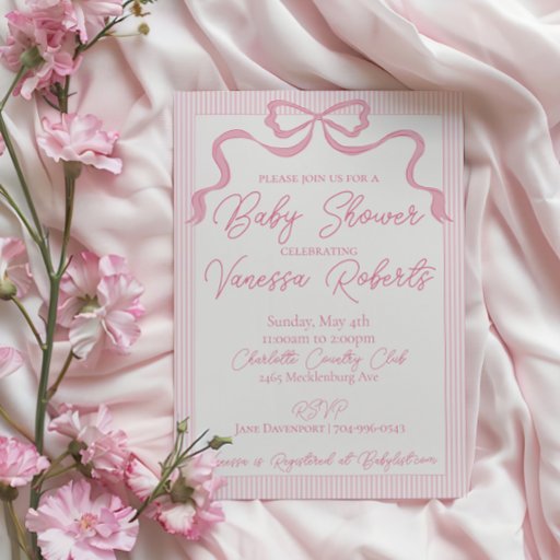 Pink Bow Baby Shower, Pink Ribbon Invitation