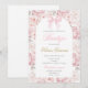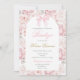 Pink Bow Baptism Floral invitation in Spanish, Invitación de moño rosa para Bautizo en español