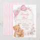 Sweet and elegant baby shower invitation featuring a watercolor bear mom and baby, soft pink florals, and a romantic bow design. Perfect for a baby girl shower, bear theme, or “Bearly Wait” baby shower celebration. Fully customizable with your event details and available as a printed or digital invitation.