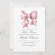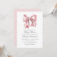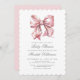 Simple Watercolor Pink Bow Baby Shower Invitation. Available as a printed invitation or as a downloadable digital invite you can email or print locally.