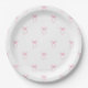These bridal shower plates feature a pink bow design. The script text is not editable. The other text is fully editable. For more advanced customisation of this design, simply select the "Customise It" button above.