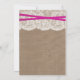The design features a lovely pink bow on a rustic burlap effect background with a romantic vintage white lace effect trim.