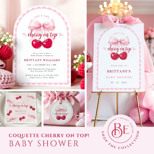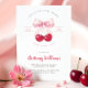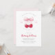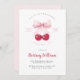 Celebrate the sweetest baby shower with this Pink Bow Cherry Baby Shower Invitation. Featuring glossy watercolor cherries and a delicate pink bow, this coquette design exudes charm and femininity. The soft pink and red palette and elegant script make it perfect for a stylish and joyful baby shower for a baby girl.