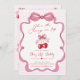 Pink bow cherry ribbon girl birthday Party Invitation