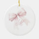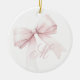 Add a touch of elegance and femininity to your holiday decor with this beautiful Christmas ornament featuring a delicate pink bow and a personalised script initial monogram. The soft, girly design is perfect for bringing a cute and trendy accent to your Christmas tree. Easily customise with your initial for a chic, personalised touch that complements your festive decor. This ornament is the perfect blend of modern style and coquette charm, making it a lovely gift or keepsake for the holiday season.