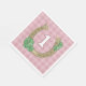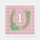 Pink Lucky One napkins with a printed pink gingham pattern with a hand-drawn illustration of a lucky horseshoe adorned with four-leaf clovers framing the number 1 to symbolize your darling daughter's first birthday! The number is customizable in case you're celebrating a different birthday for your lucky charm!