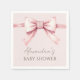 This personalised Pink Bow Baby Shower paper napkin adds a charming touch to your celebration. Featuring a delicate dusty pink watercolor bow against a soft pink background, it perfectly captures the fun coquette theme. The elegant blend of modern and calligraphy script fonts in a warm mocha tone adds a touch of sophistication. Whether it's for cocktails or dessert, this paper napkin is a lovely and functional addition to any Blush Pink Baby Shower celebration, making it the perfect choice for an unforgettable event.