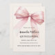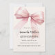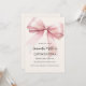 A soft beige, cream coloured background, decorated with a pink large bow. Personalise and add a name and party details.