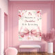 A cream, beige coloured background decorated with a large pink bow and pink roses, florals. Personalise and add a name.