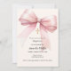Pink bow cream girl Baptism Invitation