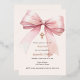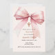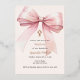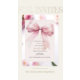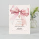 A soft beige, cream coloured background, decorated with a pink large bow and a golden cross. Personalise and add the name and details details.