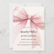 A soft beige, cream coloured background, decorated with a large pink bow. Personalise and add a name and party details.