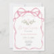 Pink Bow Cross Wildflowers Baptism Invitation