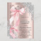 Elegant silver glitter drips, watercolor pink bow, and silver crown on a rose gold background. Personalize the text template with your event details. This invitation is available in both printed and instant download digital formats for your convenience.