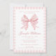 Adorable 'Diaper and wipes' themed baby girl shower invitation featuring a charming pink watercolor illustration of cute pink bow surrounded in cute gingham pattern. Ideal for preppy and stylish coquette baby girl shower.