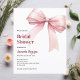 An elegant white background, decorated with a pink coloured bow. Personalise and add a name and party details.