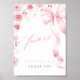 Romantic favors table sign featuring soft florals and a delicate pink bow.