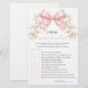 Add a touch of elegance to your cute preppy baby girl shower with our sophisticated "Over or under" game. Featuring a charming pink watercolor bow surrounded by pink flower bloom, this delightful activity is perfect for enterntaining your guests and creating lasting memories.