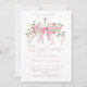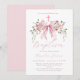 Pink Bow Floral Coquette Girl Baptism Invitation
