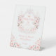 Pink Bow Floral Crest Baby Girl Shower Pedestal Sign