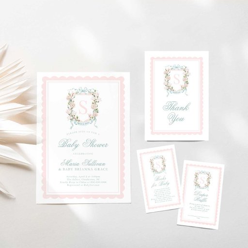 Pink Bow Monogram Floral Crest Baby ShowerDesigned by Britt at Helia Design Co.
