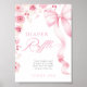 Elegant diaper raffle table sign with soft floral details and a romantic pink bow.