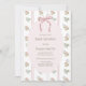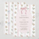 Sweet baby shower invitation with a soft pink egg shape, watercolor bow, and delicate floral stripe pattern. This design is perfect for a spring baby shower, Easter-inspired celebration, or a charming floral baby sprinkle theme.