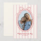 A sweet and charming Valentine’s Day photo card featuring blush pink stripes and an adorable scalloped frame topped with a hand-drawn bow. The oval photo window beautifully highlights your favorite picture, while the soft red script adds a warm, festive touch. Perfect for sharing love with family, friends, or classmates. Easy to personalize with your own photo and message.