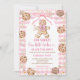 Pink Bow Gingerbread Christmas Cookies Baby Shower Gingham Gold Snowflakes Invitation