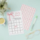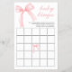 Pink bow and pink gingham preppy baby Shower Bingo game card.