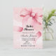 This baby girl shower invitation features a delicate blush pink bow ribbon. It is beautifully adorned with modern calligraphy in a sophisticated blush colour, creating a timeless and graceful design. This invitation is perfect for setting the tone for a memorable celebration.