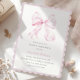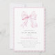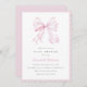 Sweet baby shower invitation that features an elegant pink bow. Choose the scallopped edges for a whimsical finish.