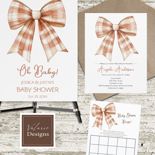 Dark pink plaid bow watercolor. Spring and fall themed baby shower. whimsical illustration