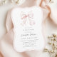 Minimal baptism invitation that features an elegant pink bow and elegant typography.