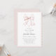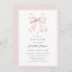 Minimal baptism invitation that features an elegant pink bow and elegant typography.