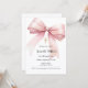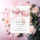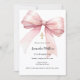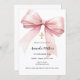 A white background, decorated with a pink large bow and a golden cross. Personalise and add a name and details details.