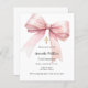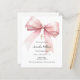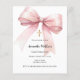 A white background, decorated with a pink large bow and a golden cross. Personalise and add a name and details details.