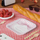 This pink bow baby shower coquette striped square baby shower paper plate design features soft pink stripes, a large bow and ribbons, and delicate frame details. Perfect for a feminine celebration, it creates a charming, preppy, and elegant look that feels sweet, stylish, and timeless. Created by Simply Farmhouse Press.