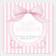 Pink Bow Girl Coquette Striped Baby Shower Square Sticker