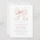 Delicate Elegant Pink Bow First Birthday Invitation for baby girls