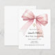 A white background, decorated with a pink large bow and a golden cross. Personalise and add a name and details details.