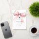 A white background, decorated with a pink large bow and a cross. Personalise and add a name and details details.