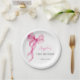 Watercolor Pink Bow Ribbon Girls First Birthday Paper Plates. Matching items available.